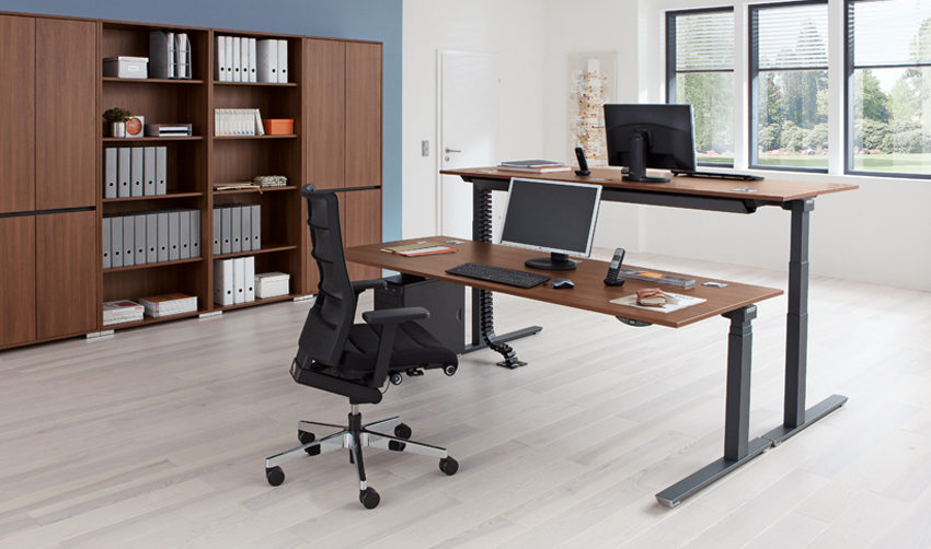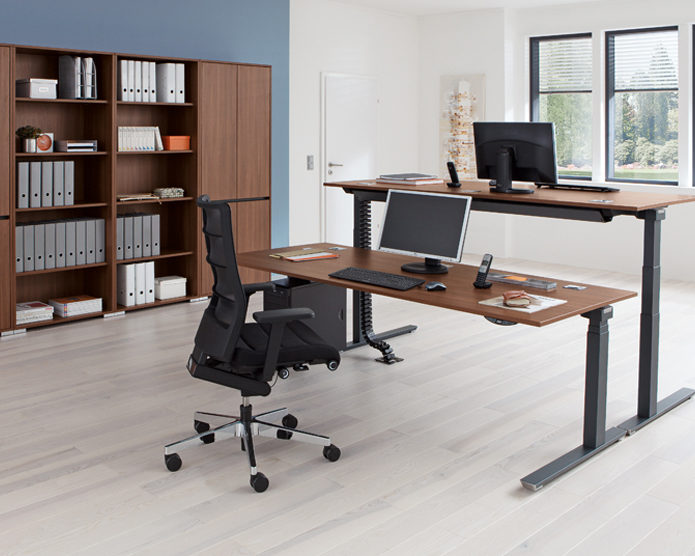 Door een hoekbureau bespaart u ruimte in kantoor of op uw thuiswerkplek door de ruimte optimaal te benutten. Het hoekbureau bieden wij uiteraard ook aan als verstelbaar zit-sta bureau. Afhankelijk van de afmetingen van uw blad is een hoekbureau met een maximum van 4 tegelijk verstelbare poten mogelijk. De elektrische verstelling van zit tot sta hoogte maakt een hoekbureau praktisch voor uw inrichting.een hoekbureau bespaart u ruimte in kantoor of op uw thuiswerkplek. Het hoekbureau bieden wij uiteraard ook aan als verstelbaar bureau. Deze uitvoering is een goede keuze door zijn moderne technieken. Daarnaast is een hoekbureau praktisch voor uw inrichting.Verstelbaar zit-sta meubilair